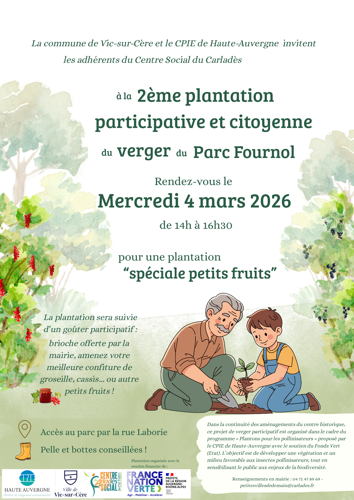 La plantation sera suivie d’un gouter partagé sur site, la mairie offre brioches et boissons, et nous faisons appel aux volontaires pour faire déguster leur meilleure confiture maison de groseilles, cassis, ou autre petits fruits du Carladès!